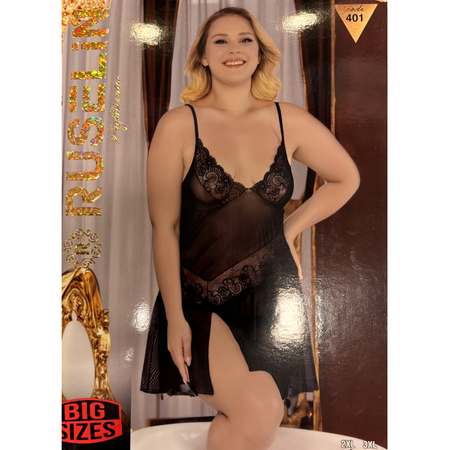 בייבידול שחור מעוטר תחרה עם שסע סקסי Ruselin 2XL